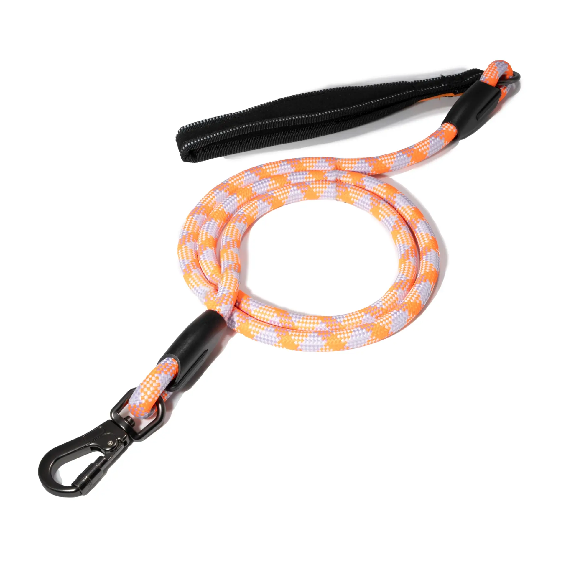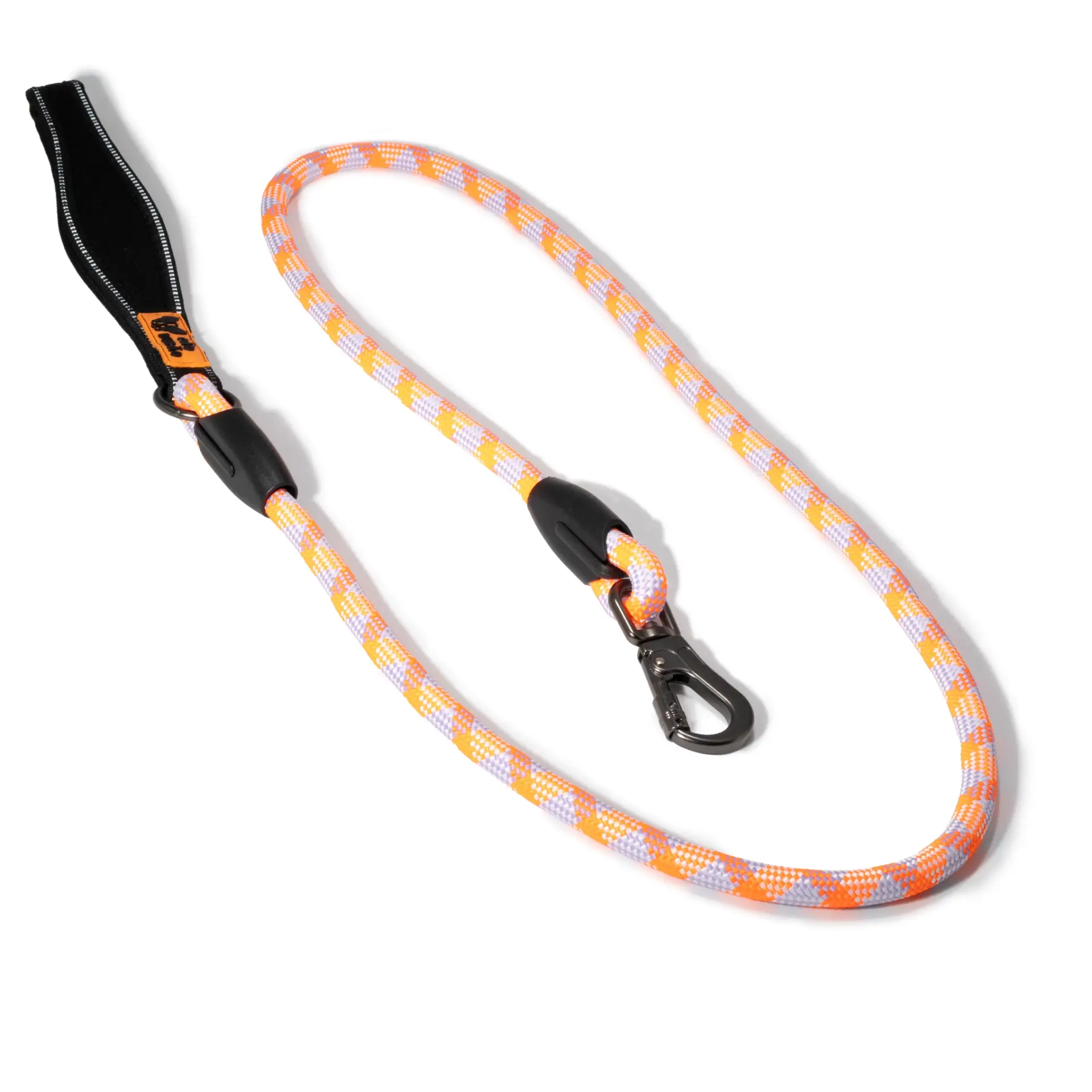 A Guia de Corda Reflexiva da Cão Durão une resistência e estilo com materiais de alto desempenho: corda de escalada com fios reflexivos, alça de neoprene supermacia e mosquetão com trava de segurança. Ideal para quem busca um passeio mais seguro, confortável e cheio de personalidade — seja na cidade ou na trilha.